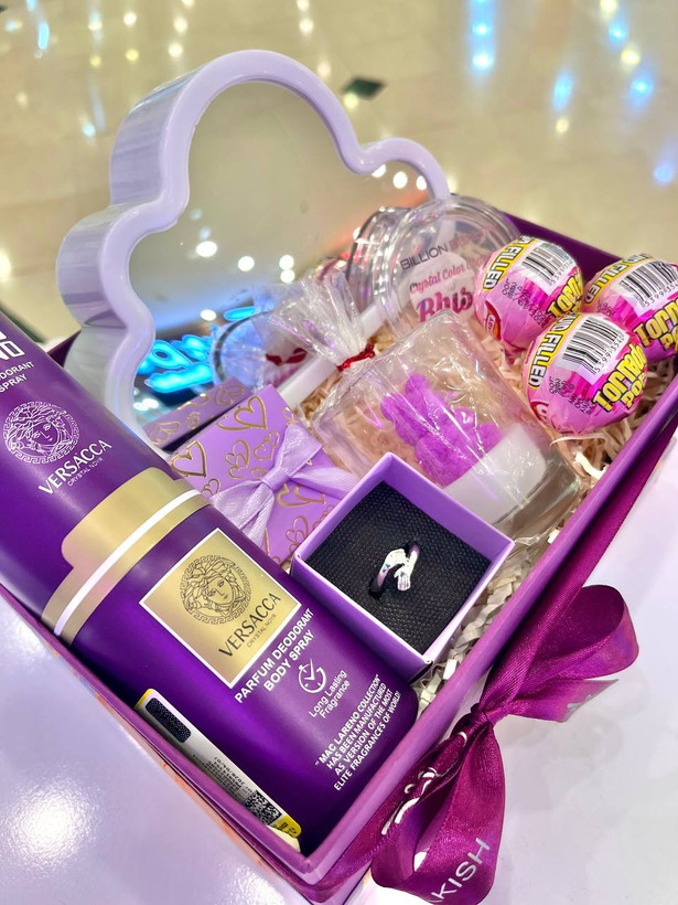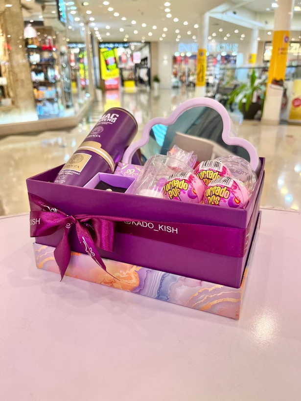 باکس کادویی دخترانه گل لاله بنفش